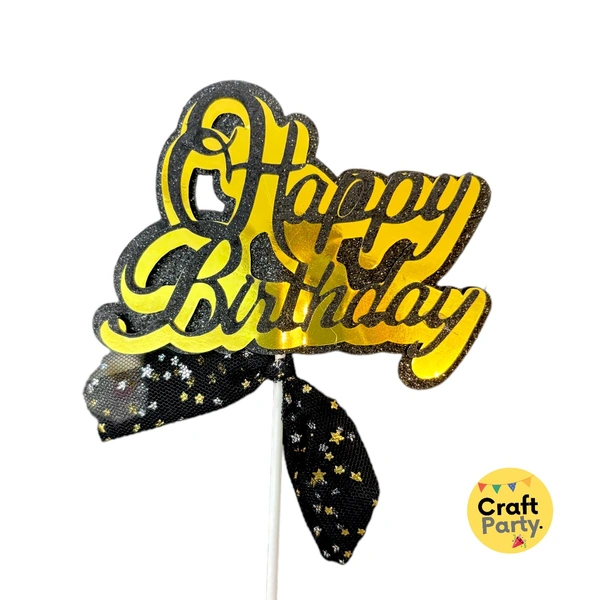 Black Paper with net Happy birthday cake topper tag for cake and hamper decorations